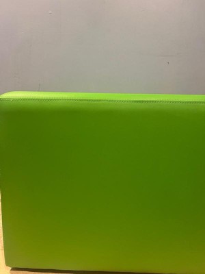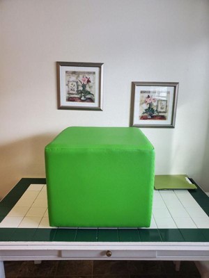 [This review was collected as part of a promotion.] I received this ottoman/stool through Influenster. It's fairly large as it stands about 18 1/2 inches tall and and 21 g 1/2 inches in width. It would be a great addition to an office that might have children present. It's stitched together very well and has held up to my children playing on and climbing all over it. It's a bright green which is a fun and playful addition to their room. It would be great on a covered patio or in a four seasons room as a stool/bench at home as well. Overall it seems to be of great quality and easy to wipe off and clean. I would definitely recommend it.