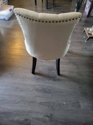 Transport your decor to a simpler time with the Regent Dining Side Chair. Fashioned with a chic and elegant look, Regent features finely tufted buttons, studded nailhead trim, and a regal seat generously padded in foam and upholstered in polyester fabric. Regent comes with non-marking foot caps, tapered wood legs, and works well in both modern and traditional dining rooms.