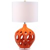 Brighten your space with the Regina table lamp. Its vibrant orange color brings a lively touch to any room, making it perfect for adding a pop of color to your decor. Crafted from glazed ceramic, the lamp exudes an appealing modern charm that complements various styles. The smooth surface and sleek design create a calming yet stylish ambiance, making it an excellent addition to your living room, bedroom, or office. Embrace the blend of form and function with the Regina table lamp, a delightful focal point in your home that illuminates your surroundings with effortless elegance.
