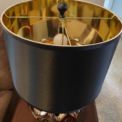 I really loved these lamps online. I had no idea though that the inside of the shade is shiny GOLD. I think they purposely do not show this in the photo. Just a heads up to anyone that may be thinking about these lamps. The base is bronze but the shade is completely shiny metallic gold. Love the lamps but may end up changing out the shades.