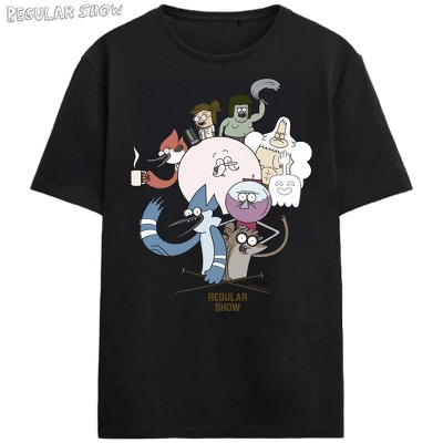 Regular Show Good Times Halftone on Black Adult Crew Neck Short Sleeve T-shirt - 6XL