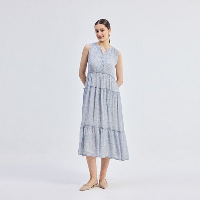 Reistor Women's Floral Short Tiered dress in Light Blue, Floral Poetry, X-Large
