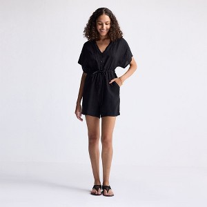 Reistor Women's V neck Drawstring Romper - 1 of 4