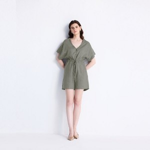 Reistor Women's V neck Drawstring Romper