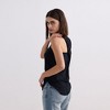 Sleek and simple with a fun cross back twist detail, this black tank is your new fave! Crafted from a soft and stretchy modal spandex blend, it offers a luxurious feel that hugs your body in all the right places. The regular fit provides ease and comfort while still maintaining a flattering silhouette. Whether you're headed to a brunch, a night out, or lounging in style, this versatile tank can do it all. Dress it up with a skirt and heels or keep it low-key with jeans and sneakers. The unique back design adds just the right amount of flair, making this a standout staple in any wardrobe. Lightweight, breathable, and endlessly wearable this is the top you'll reach for again and again.
