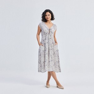 Designed from flowy Bemberg™ crepe, this deep V-neck floral dress features soft gathers and a front tie for a customizable and flattering fit. Lightweight and breathable, it’s perfect for parties, vacation, or even a casual day spent lounging. The versatile design and effortless charm of this dress make it a great, must-have addition to your wardrobe.