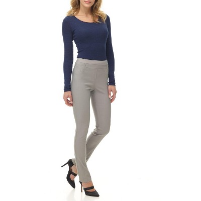 Rekucci Women's Secret Figure Pull On Knit Slim Straight Leg Pant with Wide Waist - DK Charcoal, 12 Short