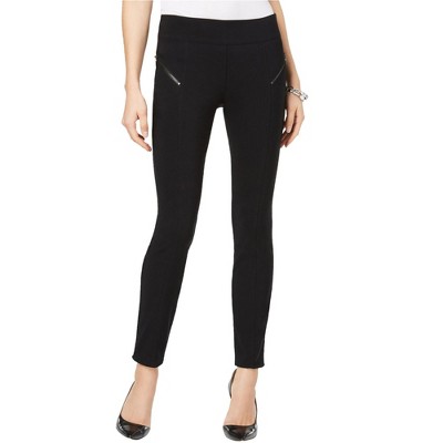 Step into sleek style and all-day comfort with the Rekucci Women's Secret Figure Pull-On Stretchy Knit Skinny Pant. Designed to feel like yoga pants but polished enough for the office, these versatile pants feature a flattering mid-rise fit with a hidden tummy-control panel for a smooth silhouette. The chic pull-on style includes accent tabs with snaps and functional front zipper pockets for a modern touch. Made with a luxe compression knit ponte fabric, these pants sculpt, shape, and move with you—perfect for work, travel, or everyday wear.