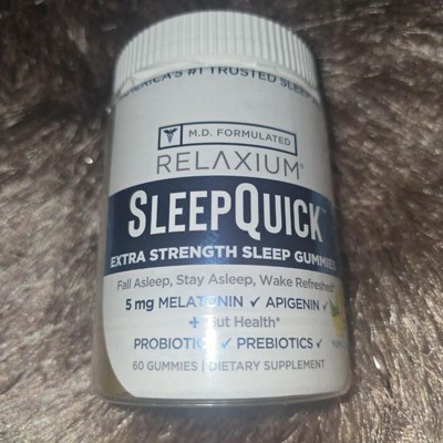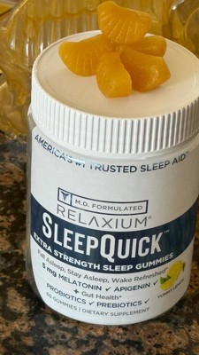 [This review was collected as part of a promotion.] This yummy lemon flavored Relaxium Sleep Quick extra strength sleep gummies help you fall asleep and stay asleep faster with 5 mg of melatonin. It's good for your gut because it is made with probiotics and probiotics. This sleep gummy is formulated by medical doctors. One gumny is all you need before bed. This formula also helps you wake up refreshed with non-habit forming, drug-free sleep aid. It's gluten-free & gelatin free. I like the way it taste. They look like little lemon wedge shapes. I would recommend this to others that may need a little help in falling asleep & staying asleep at night.