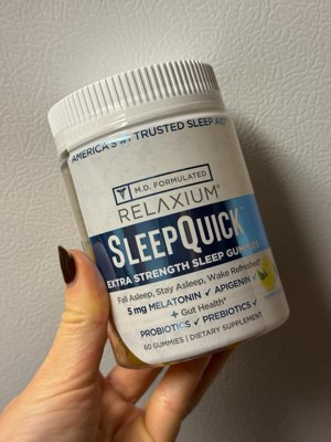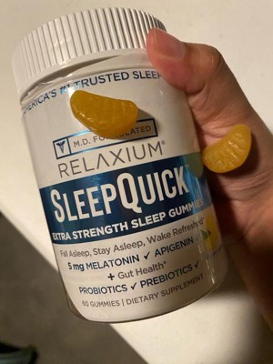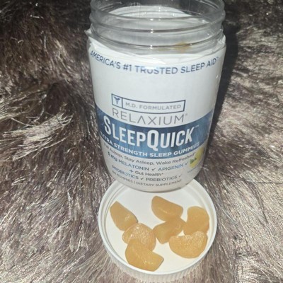 [This review was collected as part of a promotion.] RELAXIUM sleep quick gummies I received complimentary from Influenster for my honest opinion and I've been using them for 2 weeks now. I take 2 gummies 30 minutes before bed and have regulated my sleep schedule. I would have a hard time falling asleep and wake up tired in the morning. Now just in 2 weeks my sleep has changed. I get a full 8 hours sleep and no grogginess or tired feeling in the morning. Now I take them as needed .Great zesty lemon flavor and great easy to chew gummy makes me enjoy taking them .Highly recommend