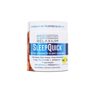 Relaxium Sleep Quick Gummy, Sleep Aid Support, 5 mg Melatonin, Vitamin D-3, Exclusive Prebiotic & Probiotic Blend, Gluten and Drug Free, Vegan, Lemon Flavor, 60 Gummies.