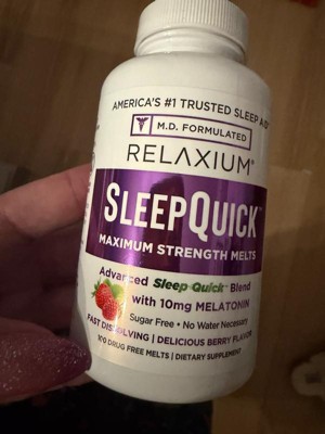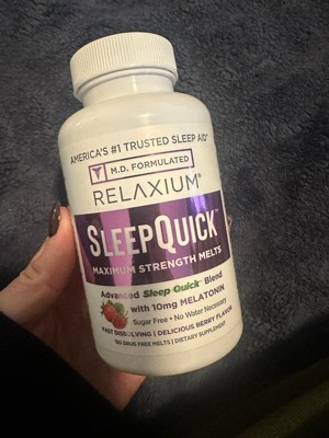 [This review was collected as part of a promotion.] I used Relaxium SleepQuick Melts for my mom when she was recovering from a broken kneecap and had trouble sleeping through the night. She took it abt 15-20' before bedtime, and it seemed to help her relax and sleep much better. She was able to stay asleep overnight and usually woke up later in the morning, around 9-10 am. Plus, the strawberry flavor was pleasant and easy to take, which made it more convenient than regular pills. According to her experience, she did not notice any side effects.