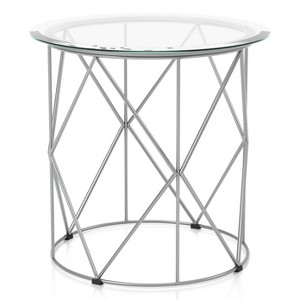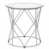 Accent your modern den or living room with this contemporary round end table. It features a steel base and supports in a gleaming chrome finish that gives any space a modern glam look and feel. The tempered glass top sits on the diamond motif base for a sleek, chic look that boasts a striking contemporary appeal.