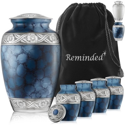 Product Name: Reminded Small Cremation Keepsake Urns for Human Ashes, Set of 4 Silver Miniature Urns with Velvet Case and Bags