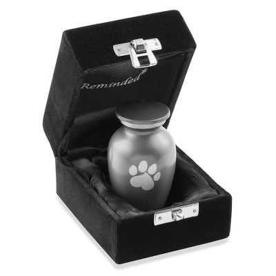 Reminded Small Memorial Paw Print Pet Cremation Urn for Dog and Cat Ashes - Up to 35 Pounds Silver