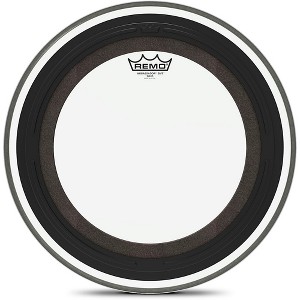 The Remo Ambassador SMT clear bass drum head is a pre-muffled design featuring Sub Muffl Technology. It is constructed with a clear 10-mil single-ply film, and an externally mounted dampening profile with free-floating acoustic foam. This enables the head and drum shell to maintain full sound characteristics with additional attack and low-end frequencies. SMT technology allows a broad tonal spectrum of tuning ranges with controlled high and mid frequencies coupled with deep, powerful low tones. It is ideal for live and recording applications, and available in 16" through 24" sizes.