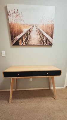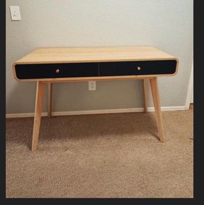 Ren Home Leva Scandinavian 2 Drawer Curved Computer Desk, Oak and Black