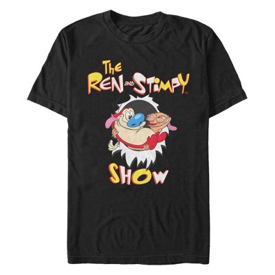 GRAPHIC TEE: Ren Hoek and Stimpy J. Cat stand and stare in front of a blue background on this graphic tee. Fans of the cartoon duo will love to relive the best of the 90s with this Ren & Stimpy t-shirt.