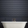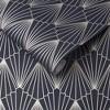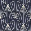 A full roll of this product is 20.5 inches wide and 396 inches long. A full roll can cover up to 56 square feet depending on the design match and pattern repeat. A sample of this product is 8 inches by 11 inches. Representing the nightlife of roaring 1920s, the Graham and Brown designers were inspired by Gatsby parties and architectural structure. This design has repetitive fans detailed in gold metallic, resplendent on a textured navy paper. Rene Nightfall wallpaper will bring opulence and sophistication to your decor. Textured wallpaper covers minor wall imperfections. Straight match with a 25.19 inch pattern repeat.