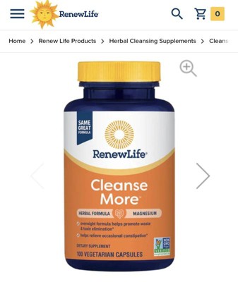 Renew Life Cleanse More, Potent Herbal and Mineral Cleanse and Detox Formula, for Overnight Constipation Relief; 60 Vegetarian Capsules