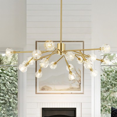 Illuminate your space with this 8-light Sputnik chandelier, designed in a dazzling dandelion shape with radiant crystal branches. Blending sunburst, starburst, and firework inspirations, this 15" modern glam chandelier adds eye-catching brilliance to dining areas, entryways, or bedrooms. The crystal elements refract light beautifully for a sparkling, upscale atmosphere. Equipped with G9 ceramic sockets and compatible with 60W bulbs (not included), this fixture is dimmable and easy to install with all mounting hardware included. Whether you're elevating a glam interior or adding a chic centerpiece, this crystal chandelier delivers a stylish, sculptural statement full of vibrant charm and luxurious glow.