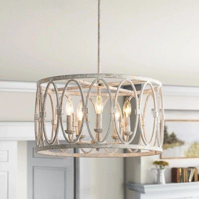 Introduce dramatic elegance to your entryway or living room with this large 8-light boho farmhouse chandelier. Featuring a tiered drum silhouette crafted from hand-woven rope and accented by slightly distressed antique brass, this design blends rustic charm with textured sophistication. Designed for dry locations and compatible with all ceiling types, it supports dimmable functionality and recommends the use of E12 bulbs (not included). Available in white or black shades, this woven chandelier enhances vintage, farmhouse, or modern interiors with its bold artistic presence.