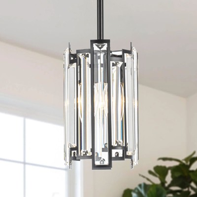 Deliver dazzling illumination with this 14"W dimmable semi-flush mount chandelier, featuring vertically aligned crystal bars that reflect brilliant light patterns across your ceiling. Designed for low ceilings, its space-saving structure offers a glamorous yet practical upgrade to bedrooms, closets, hallways, or small living areas. The clean, circular metal frame enhances its modern glam style, while sparkling crystals add elegance and dynamic depth. Compatible with E12 base 60W bulbs (not included), this fixture combines everyday function with high-end aesthetics. Whether your home leans modern, transitional, or art deco, this ceiling light fits seamlessly into any design, casting light and luxury in equal measure.