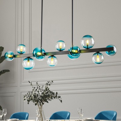 Rennnsan Quenil 48" W 18 - Light Branching Liner Crystal Modern Glam Dimmable Kitchen Island Pendant in Black