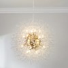 Make a bold design statement with this 16-light Sputnik chandelier, a true showstopper in modern glam style. Shaped like a radiant dandelion with crystal accents, it brings sunburst, starburst, and firework inspiration to life with every sparkling facet. At 23 inches wide, this chandelier is ideal for spacious dining rooms, foyers, or living areas seeking a unique focal point. The G9 ceramic sockets support dimmable 60W bulbs (not included), offering customizable lighting. Easy to install with all mounting hardware included, this crystal chandelier elevates any interior with its sculptural presence, luxurious shine, and unforgettable charm.