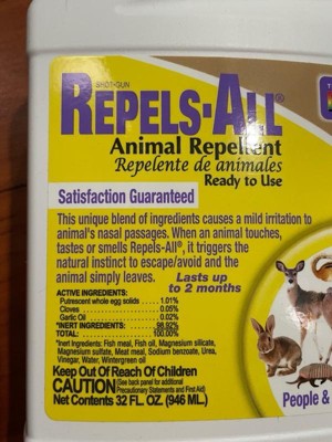 [This review was collected as part of a promotion.] This Repels-all does work. My parents have fruit and vegetable trees, but the squirrels were eating them. After using repels-all the squirrels have stopped coming to eat the fruits. The only thing is that the smell is a little strong, but it does its job.