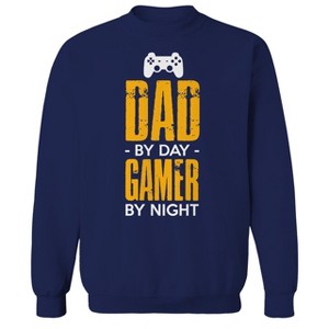 Rerun Island Men's Dad By Day Gamer By Night Long Sleeve Graphic Cotton Pullover Sweatshirt - 1 of 3