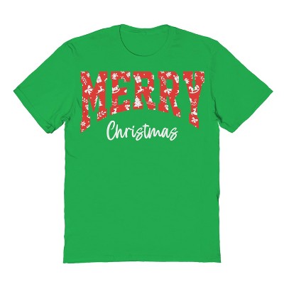 Rerun Island Men's Merry Christmas Texture Short Sleeve Graphic Cotton T-Shirt