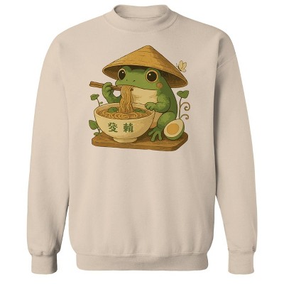 Rerun Island Men's Nippon Cat Ramen Long Sleeve Graphic Cotton Pullover Sweatshirt