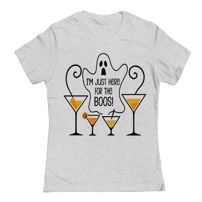 Rerun Island Women Just Here For The Boos Drinks Short Sleeve Graphic Cotton Baby Tee - Athletic Heather XXL