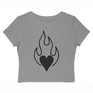 Rerun Island Women's Heart Flames Black Short Sleeve Graphic Cotton Baby Tee - Athletic Heather 3X - 1 of 4