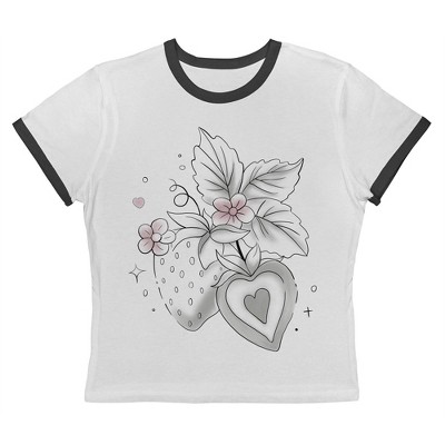 Rerun Island Women's Strawberries Gradient Outline Slice Short Sleeve Graphic Cotton Baby Tee - Cloud Dancer 2X - 1 of 4