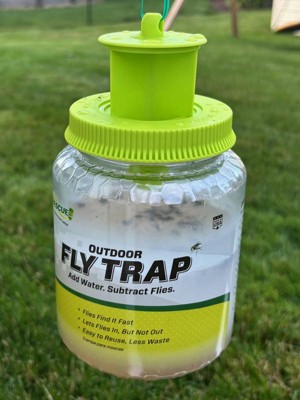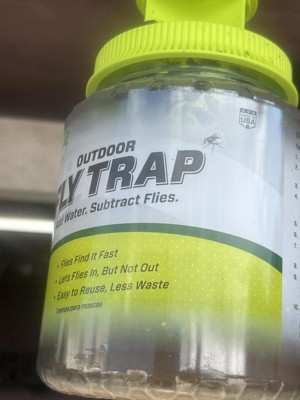 - Fast Results — Instead of chemicals or sprays, this trap lures flies with food-based attractant. Once inside, flies drown in the water added to the trap.