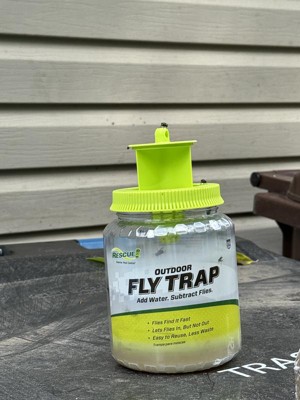 I have a few flies on my property, or at least I thought I had a *few* flies. As it turns out, I have flies and Rescue's reusable outdoor fly trap is helping me fix that! I set my fly trap up in the late morning hours, about 20' away from my deck and waited. An unexpected rain storm came through and I thought I'd wasted the bait. Nope! I was stunned to see at least a dozen flies already floating about. I left things alone and went back out a few hours later to see the deadpool double. By early evening, there were dozens of common house flies and many more teeny tiny flies all around the trap, with more dead inside. I don't even need to wait 24 hours- I'm convinced this trap works!