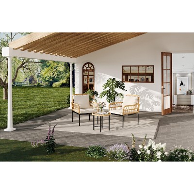 Resenkos 4 Pieces Outdoor Patio Dining Furniture Set, Two Folding Chairs, A Dining Table, An Umbrella, Wave Textured Tempered Glass Dinner Table,