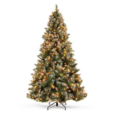 Our pre-lit 7.5-foot Christmas tree offers an exceptionally realistic appearance with meticulously crafted details. With 1526 green branch tips and 550 LED lights, this tree showcases stunning craftsmanship and brings a festive glow to any setting.Constructed from eco-friendly PVC material, it is not only crush-resistant but also incredibly durable, ensuring its longevity throughout the holiday season. Hinged branches make assembly a breeze, while the sturdy metal stand with anti-skid foot caps provides stability and balance, guaranteeing its safety and durability.Adorned with 73 groups of pinecones and red berries, this tree creates a warm and inviting festive atmosphere, perfect for homes, offices, shops, and other spaces. Its realistic appearance and high-quality construction make it a standout addition to any holiday display, elevating your spirit and bringing joy to your celebrations.UL-certified for safety, this Christmas tree is a reliable and safe choice for all occasions. With its eye-catching design and high-quality features, it is sure to be a hit this holiday season.