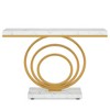- Modern Charm Console Table - Transform your space with our stunning console table, featuring a unique design with three internal ring structures. Combining a metal steel frame with a faux marble veneered panel, this 13.77"D x 41.33" W x 31.5"H table supports up to 66 lbs, making it sturdy and functional for everyday use.