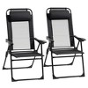 Resenkos Folding Patio Dining Chairs Set Of 2 - Black Outdoor Deck Chairs With Adjustable Sling Backs, Versatile Camping Chairs, Black