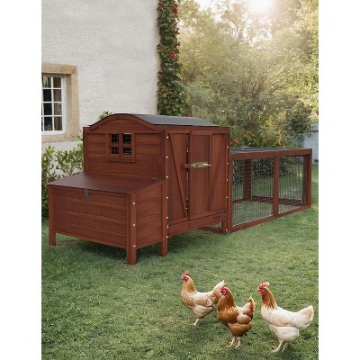 Resenkos Mobile Chicken Coop with Nesting, Sleep Area, Run, Window, Sun Deck, Doors, Tray, Wheels, Outdoor Small Pet Pen,