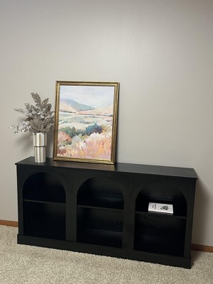 Resenkos Modern Black Console Table, Entryway & Living Room, Wooden Design, Arched Shelf, Stylish Display, Space-Saving Elegant, Black