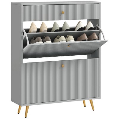 Resenkos Narrow Shoe Storage Cabinet - Wave-like Panels, Adjustable Shelves Holds 12 Pairs, Gray