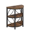 The Half-Round End Table features a rustic brown tabletop combined with sleek black metal legs, creating a stylish and elegant addition to any room's decor.This 3-Tier Narrow Side Table provides ample storage with its open shelves, keeping your