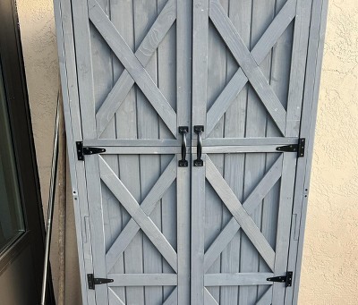 I chose this for the compartments and shelves, allowing access to small items and to store tall brooms, rakes and such. The unit smelled of chemicals and you can see its poor paint job. Cheap wood that was either already cracked upon arrival or would split when you screwed into it. Wish I didn’t spend the time putting it together as it’s too late to return.