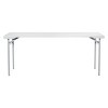 Perfect for when the occasional need for an extra table pops up, this 70” long resin multipurpose training table is both light weight and durably constructed with a sleek design. The tables legs can folded in for easy storage and is ideal for both indoor or outdoor use with its power coated tubular frame and 55mm thick top. Meets or Exceeds Test Standards (BIFMA & MTL) 350 lbs. evenly distributed