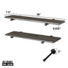 Pipes come completely ready to use—no need to clean and seal. The unique matte black color adds timeless elegance. Every shelf is individually hand-stained for an exceptional appearance. Each shelf is made from 100% real wood with no veneers. Pipe brackets are genuine schedule 40 steel plumbing pipe with class 150 iron fittings. Every piece is hand-inspected to ensure excellence. Product specs: each assembled shelf measures 36 in. L x 9 in. W x 3 in. H.