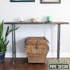 Each console table kit includes a 48 in. x 16 in. x 1.25 in. reclaimed wood tabletop featuring three pillowed edges and one live, organic edge, along with one set of "H" pipe legs. These tables complement modern, industrial, farmhouse, rustic, or mid-century interiors and are available in a variety of sizes and finishes. RESTORE reclaimed wood tops are easy to maintain—simply wipe with a damp cloth and gentle dish soap.